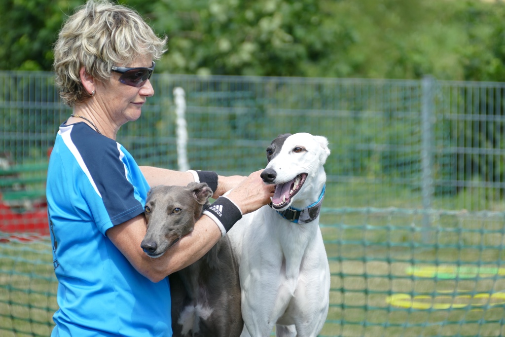 Jetzt mal Platz für die Raketen unter den Hunden. Die beiden Galgos Buddha und Crystal von Martina wurden als Rennhunde geführt und haben dort einigen Erfolg gehabt. Ein Galgo lässt so manchen Porsche am Start stehen, denn die Hunde erreichen ihre Höchstgeschwindigkeit schneller, als der Fahrer den Fuß auf dem Gaspedal hat. Sie sind sehr sanft und freundlich, aber exklusiv für die Jagd gezüchtet, was ihnen in Spanien zum Verhängnis wird (nur mal so am Rande), deshalb ist es wichtig diese Hunde entsprechend zu führen, damit sie nicht beim kleinsten Hasenohr am Horizont eben über diesen jenen verschwinden. Hinterher kommen ist unmöglich. Haben sie mal eine Fährte, sind sie auf und davon.