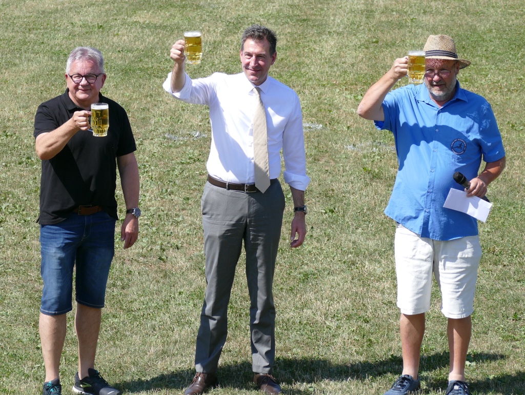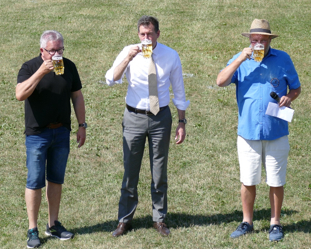 Nun begrüßte unser erster Vorsitzende Jörg Liebermann unseren Oberbürgermeister Erik Pauly und den Landtagsabgeordneten Guido Wolf, die sich über das Glas Bier vom Fass sehr freuten, wobei beide in ihren Reden ihre Hundeliebe und die Freude darüber, dass wir uns auf unserem neuen Platz so gut eingelebt haben, zum Ausdruck brachten. Vor allem Guido Wolf kuschelte noch mit einigen Welpen und hat über den Besuch bei uns sogar auf seiner Instagram-Seite begeistert berichtet.