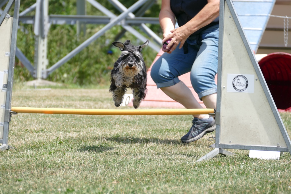 Den Anfang machte Andy mit ihrer wuscheligen Krissy. Die beiden sind in der Beginnerklasse und Krissy hat mächtig viel Spaß bei der Arbeit mit ihrem Frauchen, was immer am begeisterten Getrippel ihrer Pfötchen und dem insgesamt fröhlichen Gewusel zu sehen ist. Zwergschnauzerhündin Nelly und Andrea sind ein ganz anderes Team. Nelly zeigt die Begeisterung durch Präzision und himmelt ihr Frauchen ständig an. Sie scheint immer auf die Freigabe zum Blödeln zu warten und vibriert vor Freude. Nicole und Grisu sind ein tolles Team. Grisu hat zwar jede Menge Flausen im Kopf, aber er kann so toll mitarbeiten und macht es auch mit sehr viel Elan und Begeisterung. Nicole muss zwar den Jungspunt manchmal bremsen, aber er lernt wunderbar schnell und setzt gelerntes unmittelbar um.