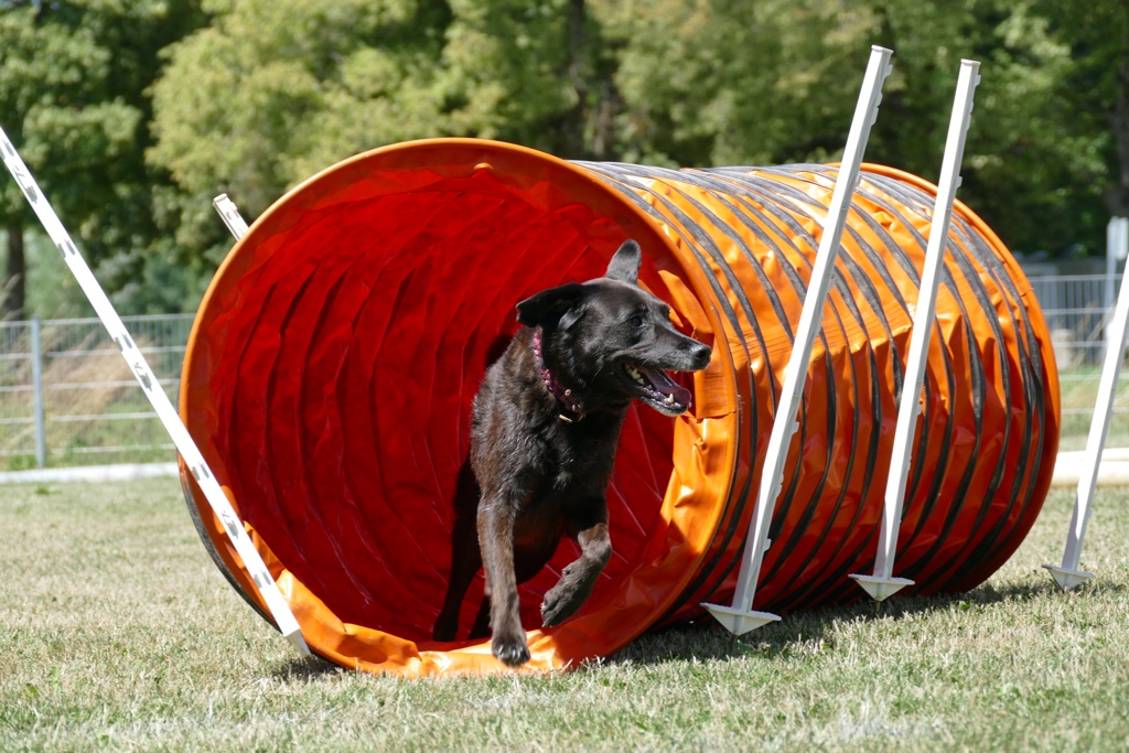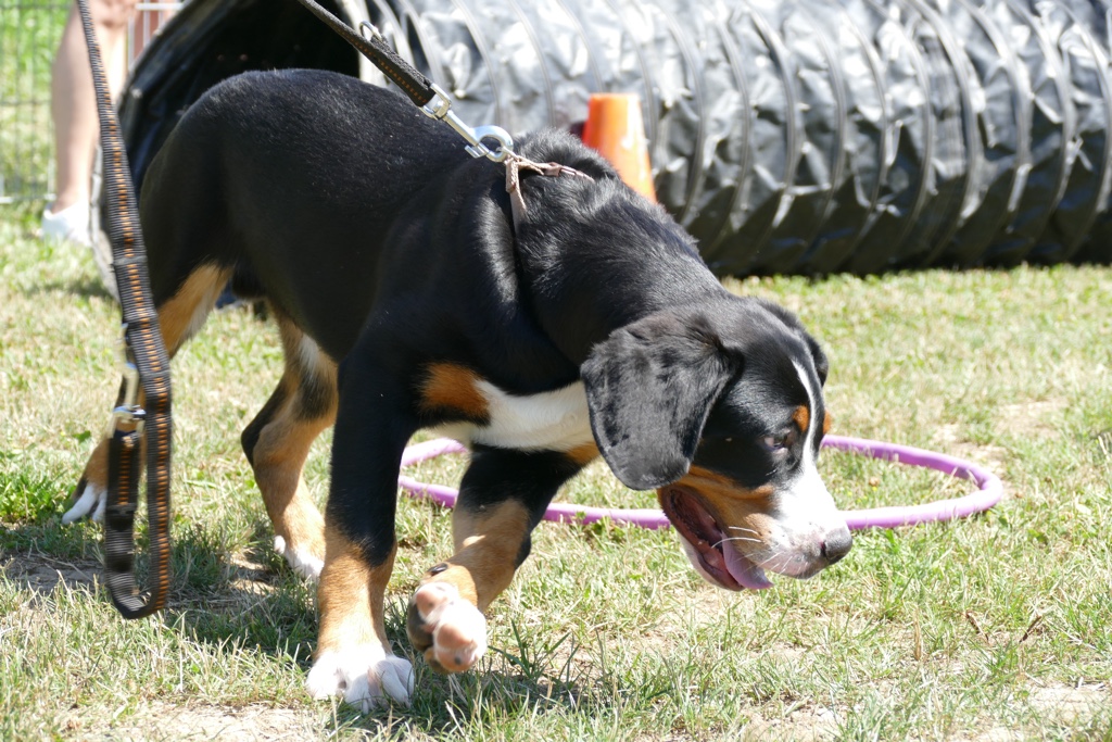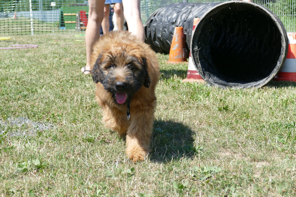 Sie können begeistert spielen und sich im Pool erfrischen. Sie rennen mit viel Freude an Verleitungen vorbei zu ihrem Menschen und stürzen sich dort auf die bereitgehaltenen Leckerchen. Ganz besonders mutige sausen auch ohne Unterstützung durch den Tunnel, schüchterne Welpen bekommen schon ihre Belohnung, wenn sie eine Pfote in den „gefährlichen“ Tunnel stellen. Je nach Charakter ist das schon eine riesengroße Überwindung und gehört genauso belohnt, wie ein Welpe, der wagemutig alle Hindernisse überwindet.
