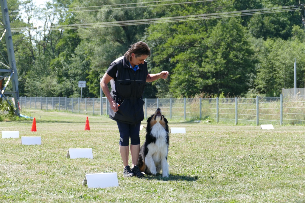 Als nächstes kamen die Junghunde an die Reihe. Sie sind quasi Teenager. Der Körper voller Hormone, der Kopf voller Flausen und dann muss man sich konzentrieren. Trainerin Nicola Simon verlangt nichts unmögliches, denn sie weiß, dass manchmal ein Teenager-Junghund einfach nicht so will. Mit viel Humor und Ideenreichtum begleitet sie die Hundehalter durch diese schwierige Pubertätszeit und schafft es, dass die Murmeln im Köpfchen an die richtige Stelle rutschen und die Youngster mit Begeisterung mitmachen. Kleine Hindernisse überwinden und spielerische Unterordnungsübungen locken auch den chaotischsten Teenie-Kopf zur Mitarbeit und so konnten alle 6 Hunde ihr Können wunderbar zeigen.