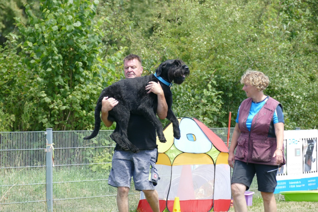Es gibt Hunde mit der Gelassenheit eines Stuhls, die einfach alles mitmachen, wie der Riesenschnauzer Leon. Er ist ein wahres Multitalent und wurde in diesem Jahr im Mantrailing Erster bei der Bundessiegerprüfung. Auch die Rettungshundearbeit liegt ihm sehr und er ist offen für alle Geräte und meistert sie sehr schnell. Dann gibt es diese furchtlosen und wagemutigen Hunde wie Grisu, der die Leiter mit einer Eleganz und Lässigkeit bewältigt, dass man nur Staunen kann.