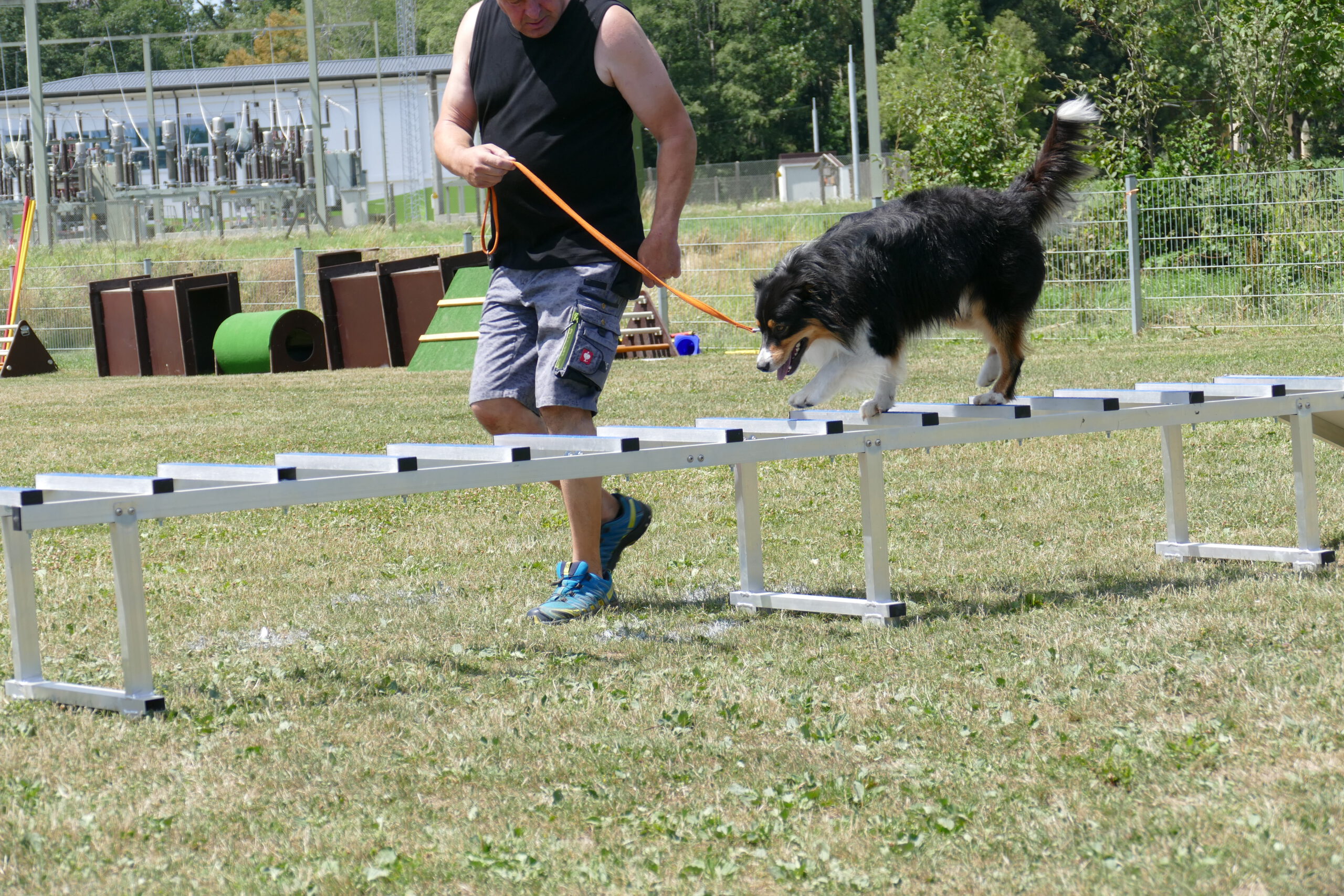 Unsere Teams befinden sich in unterschiedlichen Leistungsständen von reinem Anfänger bis zum Turnierstarter und deshalb hat jeder nach seinem momentanen Leistungsniveau einige Elemente oder den halben oder den gesamten Parcours gezeigt. So kann auch ein Hund sehr langsam alle Hindernisse absolvieren oder wie unsere letzten Starter Andy, Petra und Diana, die alle auf Turnierniveau sind in einer hohen Geschwindigkeit. Wichtig ist, dass jeder Hund den Parcours korrekt und auch auf seiner eigenen Ideallinie läuft. Je nach Geschwindigkeit, Größe und Sprungvermögen gibt es da nämlich große Unterschiede, die der menschliche Teil des Teams genau kennen muss.