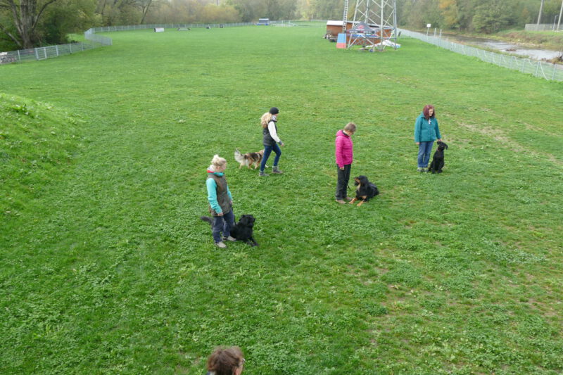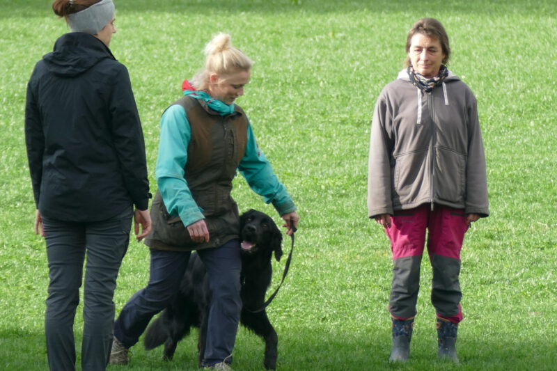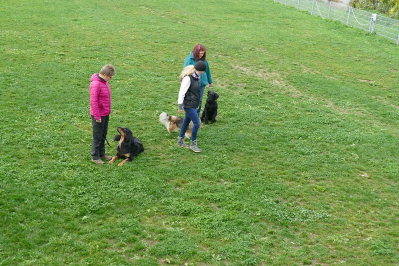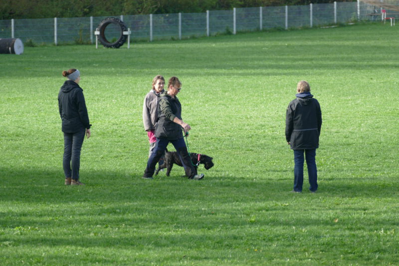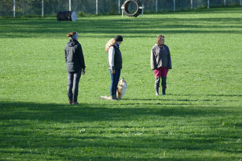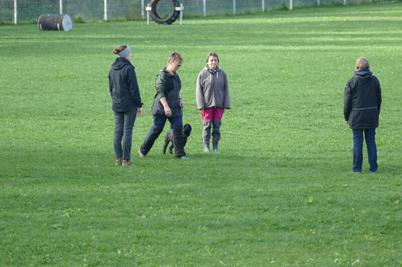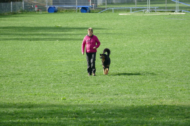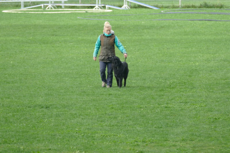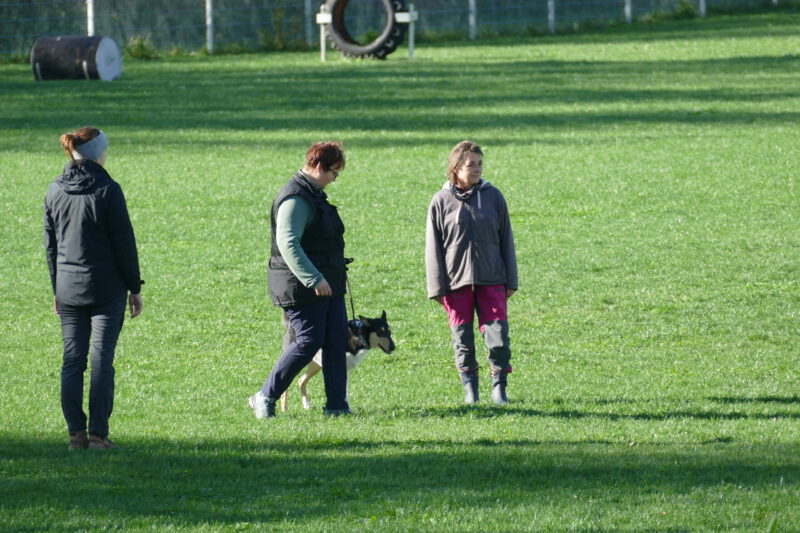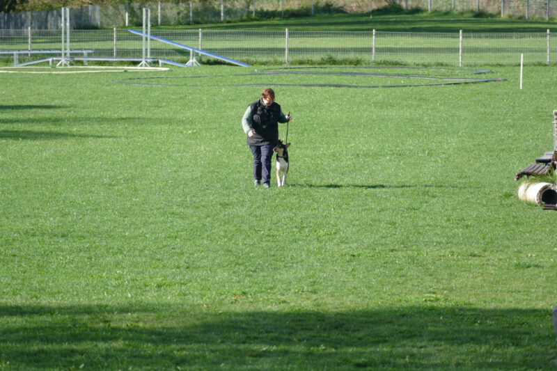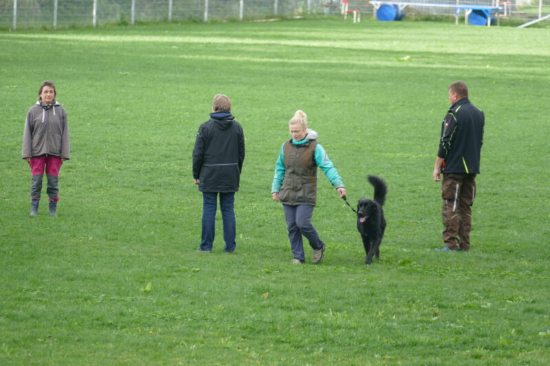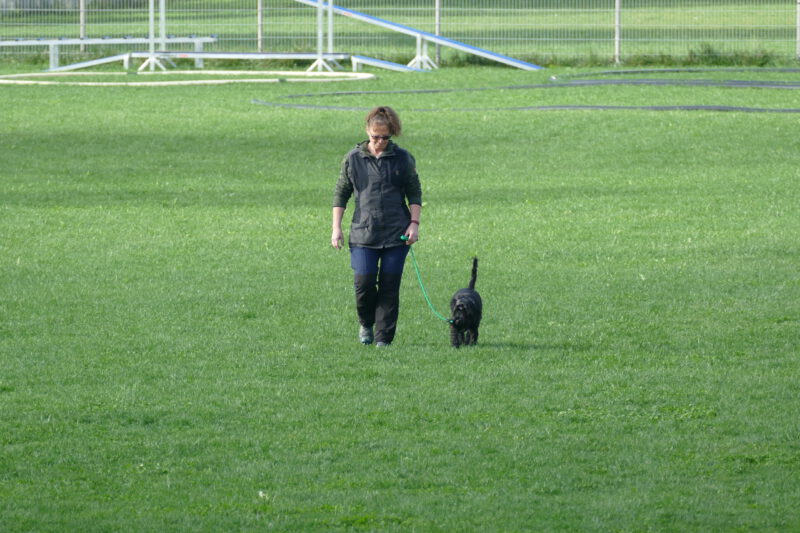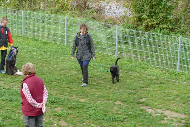 Den Anfang machten Andrea mit Mara und Nadine mit Louis. Louis durfte sich zuerst hinlegen, während Mara das Schema an der Seite von Frauchen Andrea absolvierte. Man kann eine Begleithundeprüfung auch noch so oft laufen, aufgeregt ist man trotzdem. Andrea hat in ihrer langen Zeit als Züchterin schon viele Prüfungen absolviert, aber jeder Hund ist anders und es ist jedes Mal ein erstes Mal. Aber natürlich haben die beiden die Prüfung bestanden und eine sehr schöne Vorführung gezeigt.