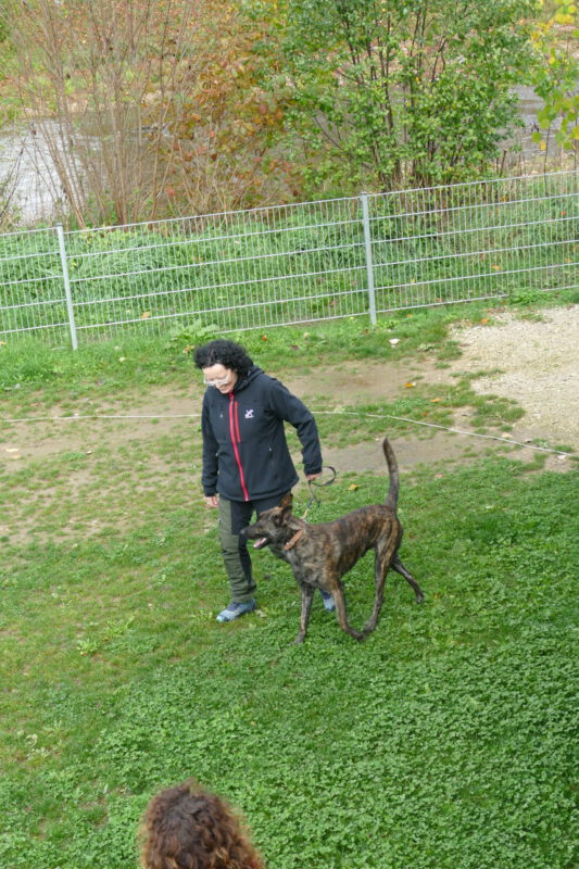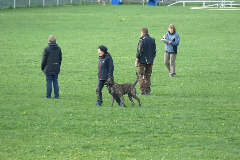 Nadine und ihr Louis haben zwar ein bisschen mit der Aufregung zu kämpfen gehabt, aber trotzdem eine sehr schöne Vorführung gezeigt und die Prüfung gut bestanden. Louis  hat den Kontakt zu seinem Frauchen nie verloren und nur mal den einen oder anderen Blick in die Gruppe riskiert. Vielleicht hätte ja jemand ein Leckeren dabei oder würde ein Spiel zur Auflockerung zu schätzen wissen. Doch diese Gedanken lenkten ihn nicht lange ab und er war fest entschlossen, sein Frauchen nicht aus den Augen zu lassen.