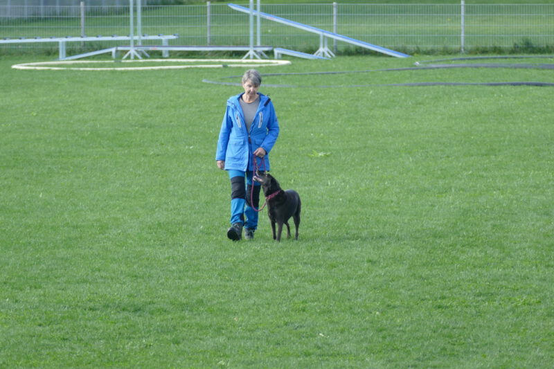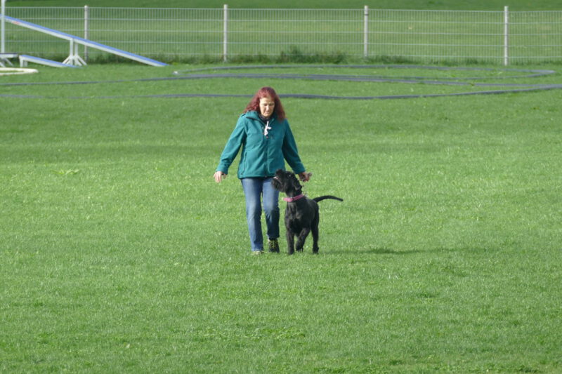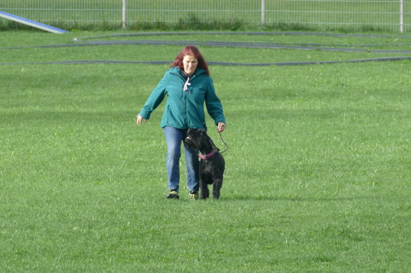 Monika und ihr Schnauzermädchen Lotte sind Wiederholungstäter. Beim ersten Versuch war Lotte der Meinung, dass das ein ganz blödes Spiel ist. Dafür zeigte sie dieses Mal, was für ein tolles Mädel sie ist und wich ihrem Frauchen nicht von der Seite. Sie ließ sich nicht ablenken und beide absolvierten eine Prüfung, bei der auch Richterin Uschi nicht viel zu kritisieren hatte. Mal ein kleiner Schwenk zur Seite oder eine Kehrtwendung, die ein bisschen enger hätte sein können, aber insgesamt war sie sehr zufrieden und bescheinigte beiden eine bestandene Prüfung.