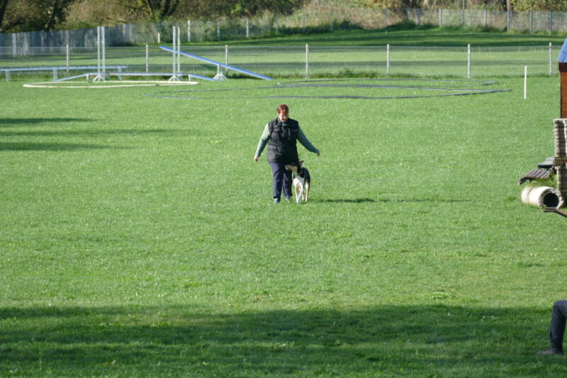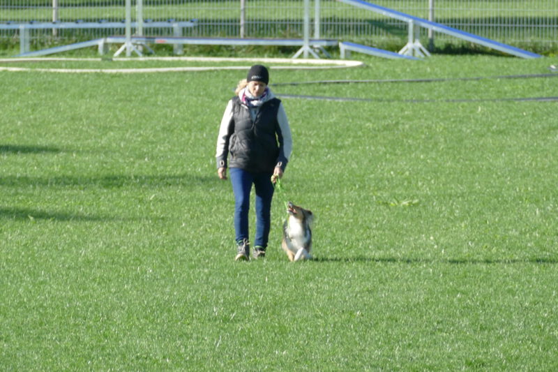 Bianca und ihre Tiffy waren noch in der Welpengruppe und beim Anfänger-Agility bei uns im Verein, aber der Beruf und Wohnort zwangen sie zu einem Wechsel nach Singen. Trotzdem freute sie sich, bei uns als Gaststarter einen Platz zu bekommen. Tiffy zeigte, was sie konnte und absolvierte mit Bianca eine sehr schöne Prüfung. Sie blieb trotz der Sitzstreikverzögerung ruhig liegen und schnupperte solange ein bisschen im Gras. Ihre anschließende Prüfung schaffte sie mit links und Bianca war unter den strengen Augen ihrer Agility-Trainerin Uschi in Personalunion mit der Prüferin nur ein klitzekleines bisschen ganz doll aufgeregt. Die kleine Sheltiehündin wird nun im Agility gemeinsam mit ihrem Frauchen durchstarten.