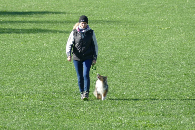 Carina und ihr kleines Sheltimädchen Ella zeigten eine sehr schöne Vorführung und Uschi konnte kaum Ansatzpunkte für Kritik finden. Hier und da ein bisschen zögerlich oder etwas weit weg vom Bein oder ein aufgeregtes Frauchen. Trotzdem lief Ella wunderbar und wunderte sich vermutlich die ganze Zeit, warum ihr Frauchen so steif und nervös war. Schließlich waren die hier schon zigmal und sind immer gut gelaufen und das war ja nix neues für die kleine Sheltiehündin. Die beiden bestanden die Prüfung mit Bravour.