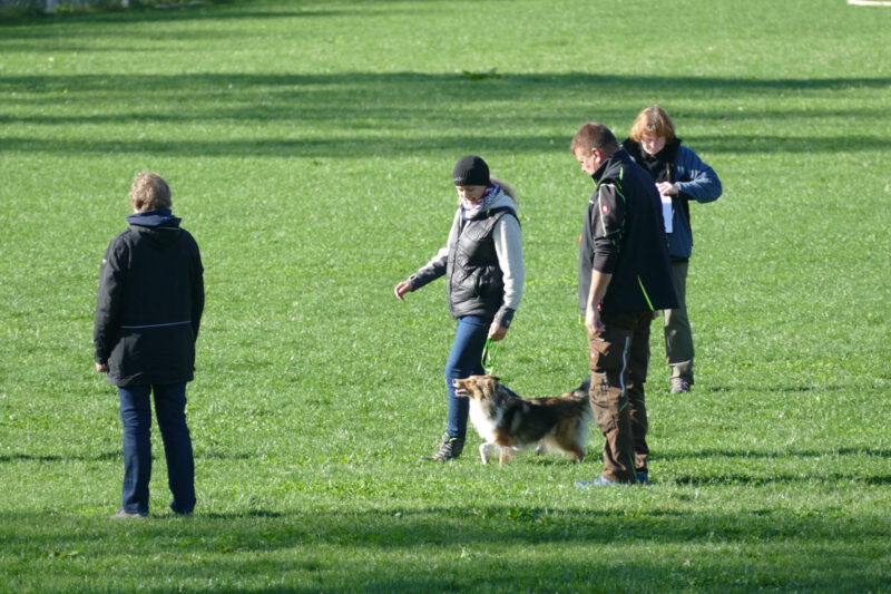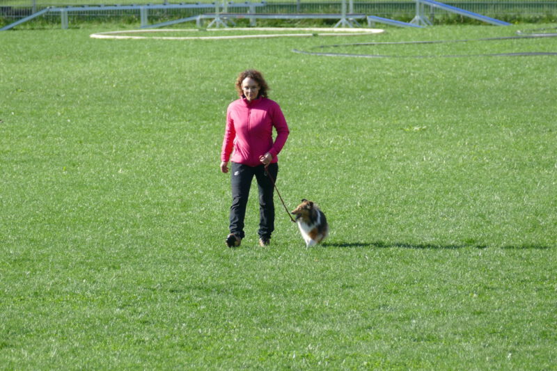 Carina und ihr kleines Sheltimädchen Ella zeigten eine sehr schöne Vorführung und Uschi konnte kaum Ansatzpunkte für Kritik finden. Hier und da ein bisschen zögerlich oder etwas weit weg vom Bein oder ein aufgeregtes Frauchen.  Trotzdem lief Ella wunderbar und wunderte sich vermutlich die ganze Zeit, warum ihr Frauchen so steif und nervös war. Schließlich waren die hier schon zigmal und sind immer gut gelaufen und das war ja nix neues für die kleine Sheltiehündin. Die beiden bestanden die Prüfung mit Bravour.