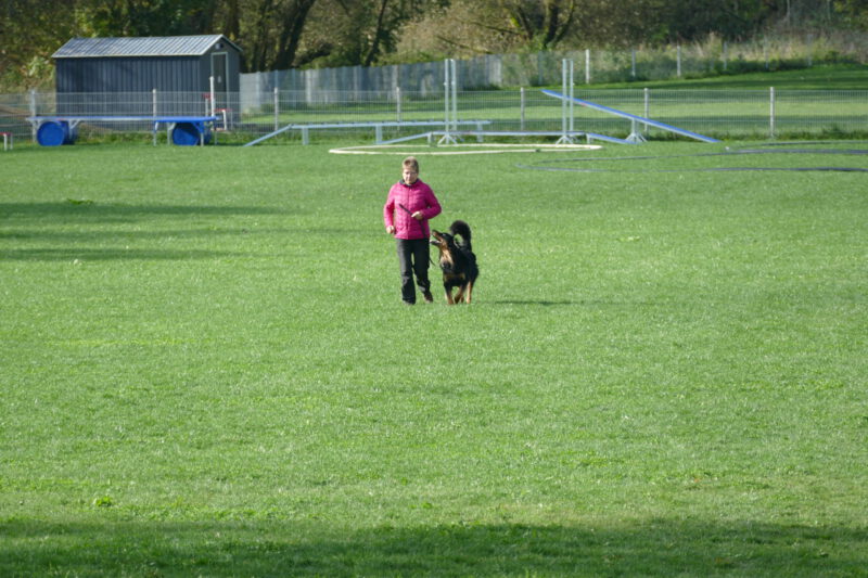 Christina und ihr Hovawart Attis „er hat ja so schöne Marken“ zeigten einfach nur eine schöne Vorführung. Christina lief wie ein Uhrwerk und Attis war der Zeiger, der mitlief. Eine wunderschöne Einheit und Vorführung. Bei der Ablage patzte Attis leider etwas, den es war alles soooooo interessant und er beschloss, dass die Liegeposition grade unbequem ist. Ob es der Singsang der Zuschauer „leg dich hin…“ war oder ob er es selbst beschloss, sich wieder hinzulegen, wird sein Geheimnis bleiben. Trotzdem bestanden die beiden und dürfen fortan im Turnierhundesport zeigen, was sie können.