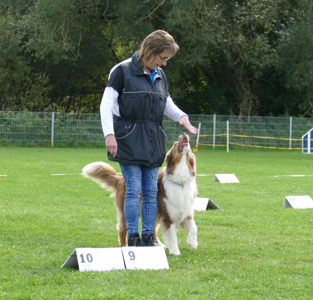 Als einzige von uns machte sich Simone am Sonntag auf den Weg nach Emmendingen, um auch den Tal-Teil zu laufen. Es lief wunderbar und beide zeigten wieder akkurate Winkel, schnelle Kommandofolgen und eine sehr schöne Vorführung. Leider wurde ihnen diese Akkuratesse zum Verhängnis, denn als Leon bei einem Platz ein bisschen stemmte, wurde ihm das prompt mit 6 Punkten gezogen. Simone war natürlich ziemlich geknickt, dass sie schon wieder wegen einer Kleinigkeit so viele Punkte verloren hatte. Dennoch erreichten die beiden in der Gesamtwertung einen hervorragenden 2. Platz und können zufrieden auf das Wochenende zurückblicken.