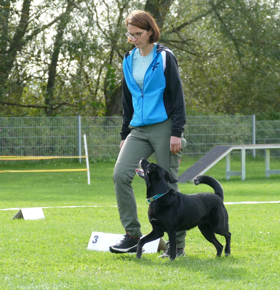 Beatrix und Maila kamen, sahen und siegten. Die beiden fungierten als eine Einheit, während sie ihren Parcours absolvierten. Beatrix liegt es in ihrer Natur, sich exakt und genau zu bewegen und Maila war schon als Junghund ein kleiner Streber, die ihrem Frauchen gefallen wollte. Die beiden arbeiten auch ohne viel Gezappel oder Animation zusammen und sind hochmotiviert dabei. Zwei kleine Schnitzer leisteten sie sich unterwegs, aber mit 98 Punkten kamen die beiden in einer sehr flotten Zeit ins Ziel und konnten sich als Sieger feiern lassen.