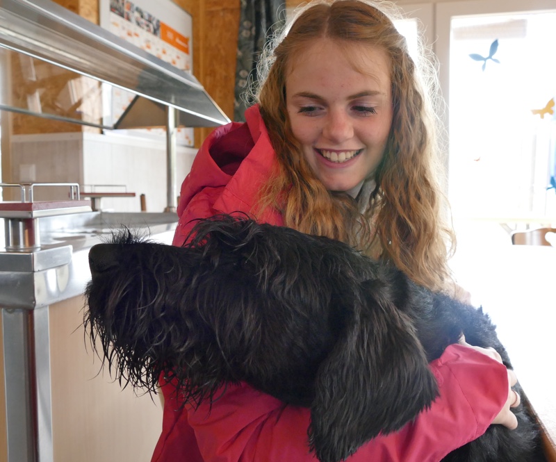 Beim Sitz aus der Bewegung war Pepper unentschlossen, was denn nun erwartet wurde und stand zwischendurch auf, setzte sich aber wieder selbständig. Das Platz aus der Bewegung versuchte sie dann aufzulockern und flitzte an Nadine vorbei, kontrollierte die Geräteräume und kam aber nach dem dritten Abrufen letztendlich doch noch zu Nadine zurück. Der Vorsitz war zwar etwas schief, aber die Grundstellung klappte dann wieder. Nun war Teamwechsel angesagt und Nadine legte Pepper ab, während Susanne mit Jula das Schema absolvieren musste.