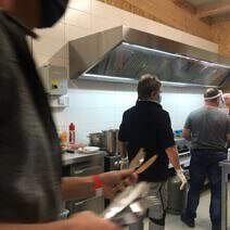 Am Sonntag regnete es nur einmal, aber dafür die ganze Zeit. Die einzigen Variationen waren die Intensität des Regens, der niemals wirklich nachließ. Der Laune und dem Elan tat dies keinen Abbruch und die Veranstaltung war gut besucht und alle waren motiviert. Unsere Küchencrew schmiss den Laden souverän und das kulinarische Angebot wurde kurzerhand um Glühwein erweitert, was sehr gerne angenommen wurde. Insgesamt waren die warmen Speisen sehr hoch im Kurs, da der vorletzte Augusttag grade mal 13 Grad auf dem Thermometer zeigte.