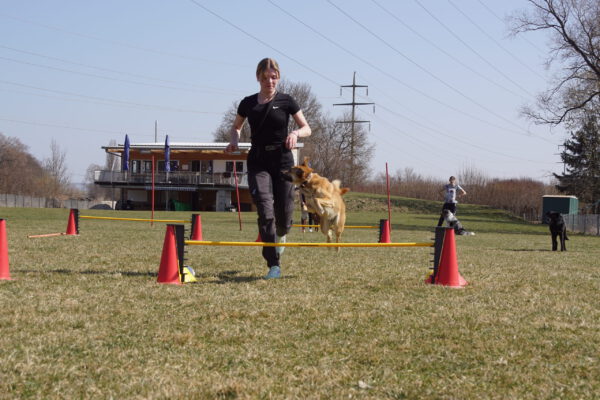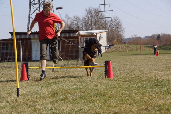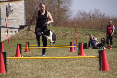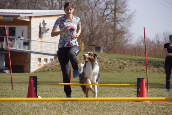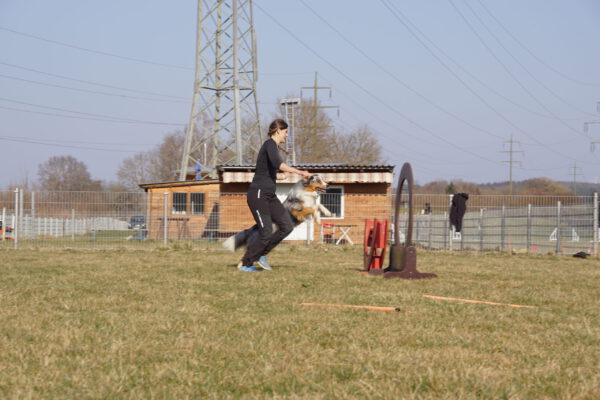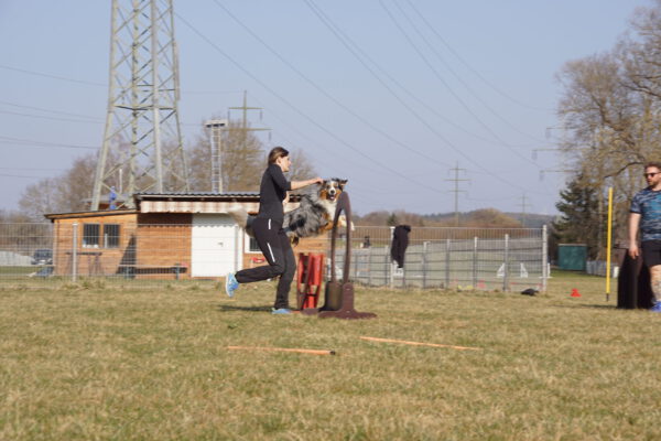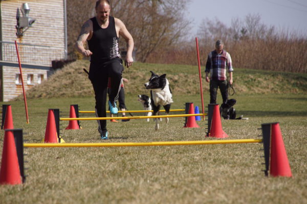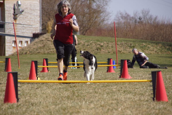 Unsere THS-Gruppe wurde mit Hürden, Slalom und verschiedenen anderen Hindernissen konfrontiert und so Mancher wünschte sich ein Navi, als sie kreuz und quer durch die Hindernisse geschickt wurden. Mickel und Trixie hatten viele lustige Ideen, die nicht nur den Körper forderte, sondern auch ein gutes Zusammenspiel zwischen Hund und Mensch sowie gute Merkfähigkeiten. Wer Vorkenntnisse im Rally Obedience oder Agility hatte, der konnte sich wenigstens auf die dort gemachten Erfahrungen in Bezug auf das Parcours merken berufen, der Rest stand so manches Mal zwischen den Hindernissen und guckte dezent ratlos.