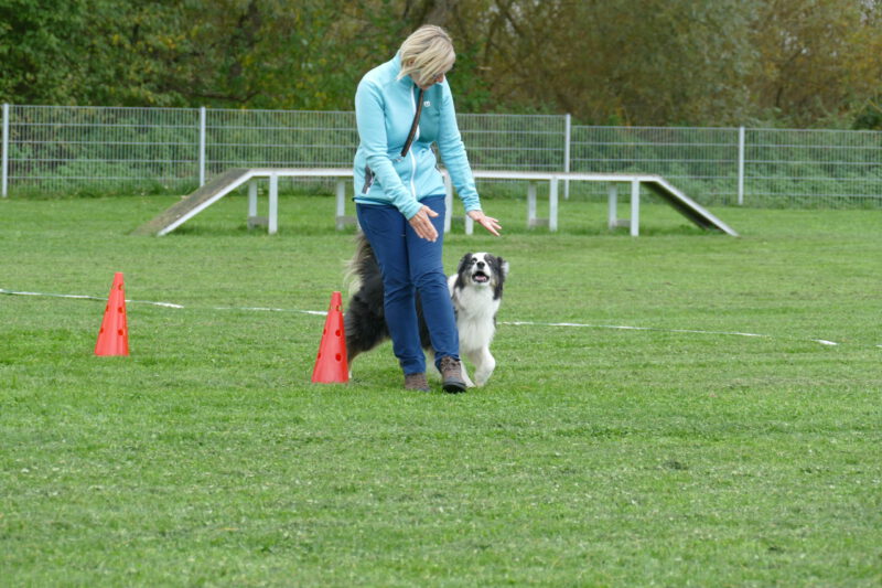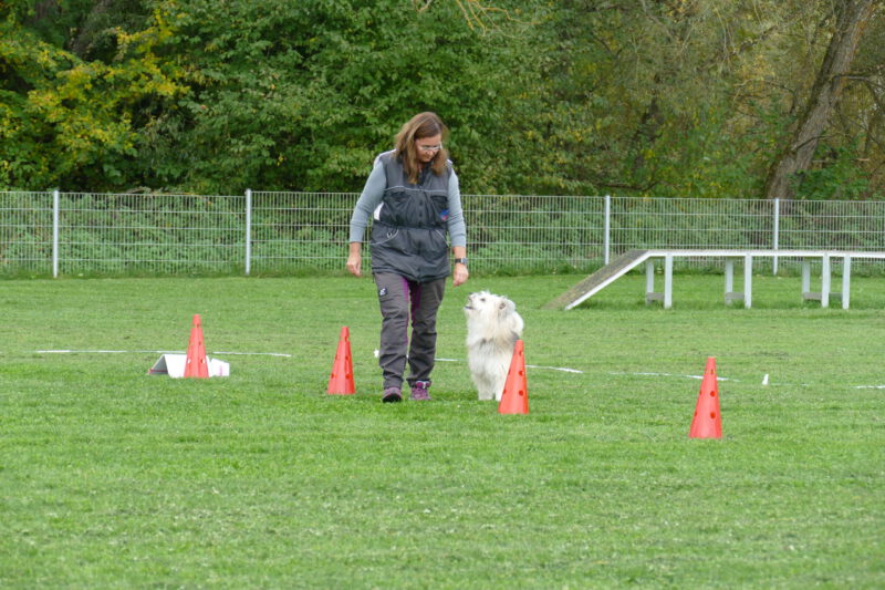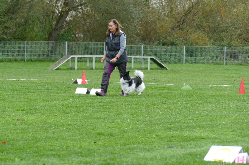 Malte überraschte sehr, da er im Training gerne schwört, dieses oder jenes Schild noch nie gesehen zu haben und eher zerstreut wirkt. Hier war er voll auf dem Punkt konzentriert und hat eine superschöne Vorführung gezeigt. Die beiden sind ein sehr tolles Team und auch die kleine rebellische Lotti war top auf den Parcours fixiert.