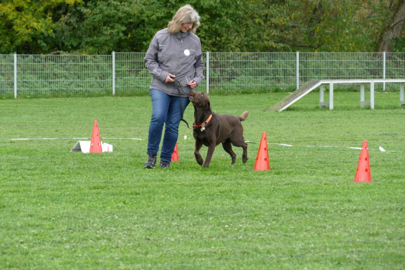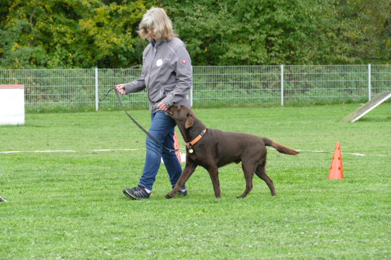 Petra startete mit ihrem Nando einen kleinen Versuch. Nando ist noch recht neu im Hause Horn und lässt sich manchmal auch schnell verunsichern. Aber von Verunsicherung war keine Spur zu sehen. Er war mit großer Begeisterung dabei und abgesehen von etwas Übereifer hatte er einen tollen Lauf an der Seite seines Frauchens. Petra war mit den 88 Punkten sehr zufrieden.