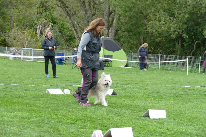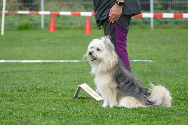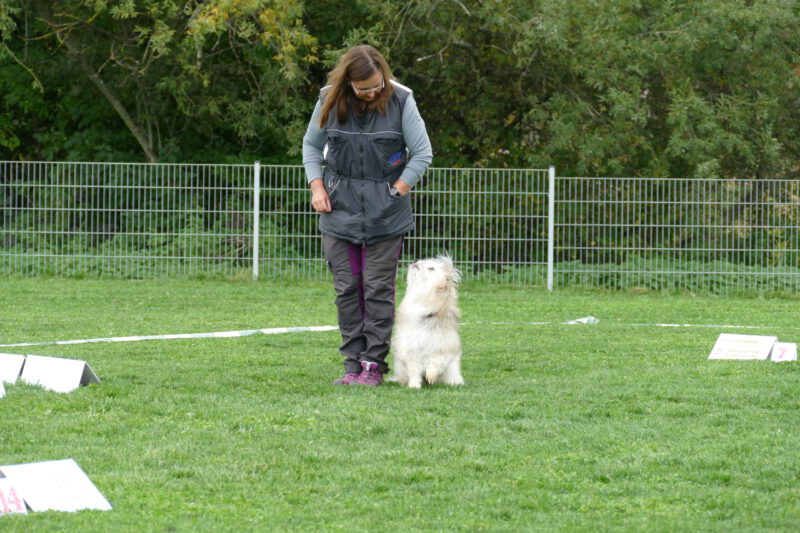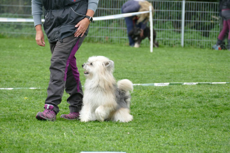 Andy und ihr kleiner Wuschelrebell Krissy starteten mit Begeisterung durch. Krissy etwas zu begeistert und wurde von Andy mitten im Slalom, den Krissy eher hopste als lief, in ein strenges Platz gerufen. Auf einmal funktionierte auch das kleine Flokatigehirn und die beiden zeigten einen sehr schönen Parcours. Natürlich war der Slalom weg, aber insgesamt war es ein wunderschöner Lauf und Andy war sehr stolz auf das kleine Wuschelchen.