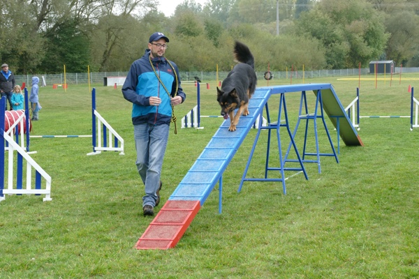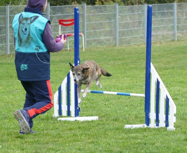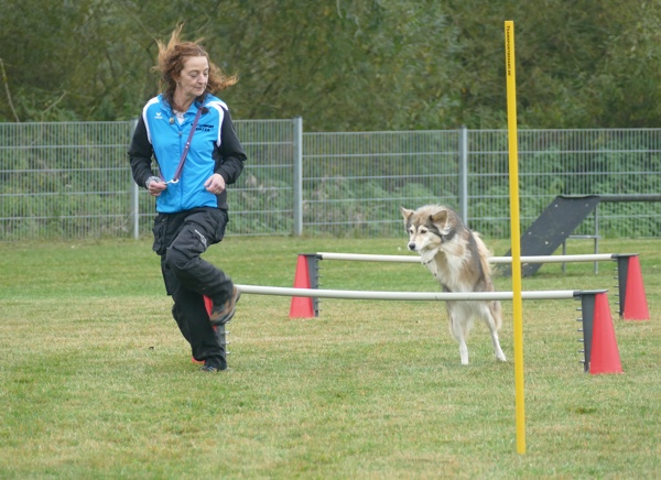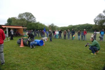 Den Anfang bildete die Agility-Gruppe, die mit kleinen Personalproblemen zu kämpfen hatte, da gleich drei Hündinnen beschlossen hatten, jetzt wäre der perfekte Zeitpunkt für eine Läufigkeit. Zwei weitere Hunde hatten sich im Vorfeld verletzt und waren noch nicht wieder fit, aber die anderen zeigten ihr Können und die quirligen Hunde hatten schnell die Zuschauerherzen gewonnen. Agility ist durch die vielen unterschiedlichen Hindernisse und Parcoursmöglichkeiten sehr vielfältig und abwechslungsreich, fordert aber von Hund und Mensch höchste sportliche Fitness. Im Agility ist die Parcoursgestaltung einigen Regeln unterworfen und ansonsten der Phantasie des Richters überlassen. Je höher die Leistungsklasse, umso schwieriger und schneller werden die Parcours, die mit vielen kleinen „Fallen“ gespickt sind, d.h. den Hund über ein falsches Hindernis verleiten. Es zählt also nicht nur die Geschwindigkeit und Agilität, sondern auch die Konzentration und die Präzision, um sich vorne platzieren zu können.
