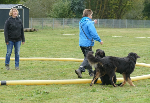 Nach den Welpen ging es gleich eine Stufe weiter zu unseren Junghunden. Wir haben sage und schreibe 5 Junghundegruppen und somit jede Menge „Halbstarke“ auf dem Platz. Aber sie machen es alle toll und arbeiten gut mit. So konnten auch unsere Raudis zeigen, was sie schon gelernt haben und haben bewiesen, dass auch ein Teenie mit dem Kopf voller Hormone ein ansprechendes Training absolvieren kann.