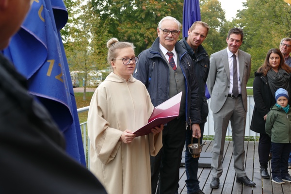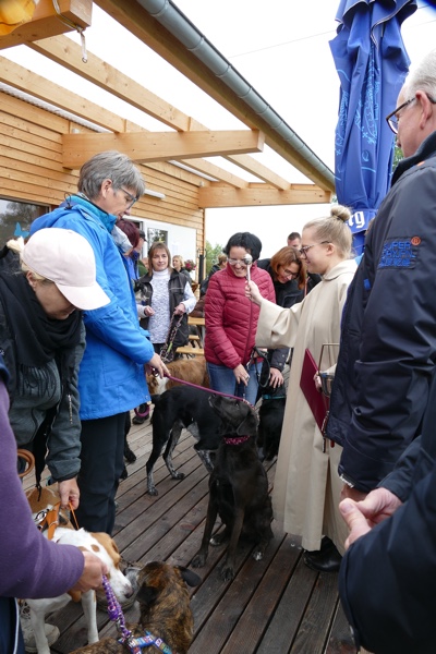 Aber mal zum Programm. Wir starteten schon früh um 10 Uhr mit einem Sektempfang und er einen oder anderen Rede. Es herrschte Einigkeit, dass unser Vereinsheim einfach großartig ist und wir alle toll zusammen gearbeitet haben. Da können wir eigentlich nur zustimmen, wenn auch der eine oder andere wehmütige Blick zum alten Vereinsgelände schweift. Wir hatten dort ja auch eine großartige Zeit. Doch, jetzt wurde unser neues Vereinsheim und der Platz sowie einige Hunde gesegnet und es steht einem wundervollen neuen Kapitel nichts mehr im Wege. Wie Segnung? Ja, wir haben uns eigens eine Segnungsbevollmächtigte kommen lassen, damit nix mehr schief geht.