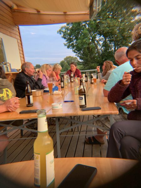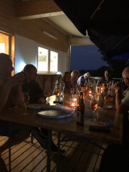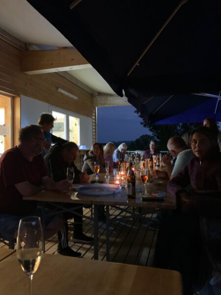 Besondere Freude hatten die Mitglieder an dem Tisch, den der 9 Monate alte Lio für sich als Rennbahn entdeckte. Jedem wuchsen mindestens 4 Arme mehr, um schnellstens, Flaschen, Gläser oder übrig gebliebene Teller in Sicherheit zu bringen, während der quirlige Blondschopf mit lautem Quietschen über den Tisch krabbelte. Die Unermüdlichsten blieben natürlich bis zum bitteren Ende und bewiesen musikalische Qualitäten, bevor sie sich zum Übernachten in ihre organisierten Schlafgelegenheiten zurückzogen.
