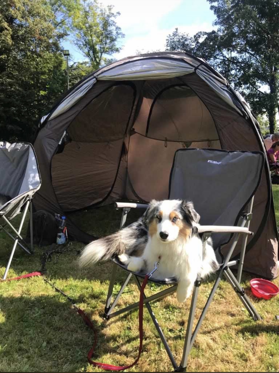 Am Samstag machte sich Petra mit Yumi auf den Weg nach Gundelfingen. Auf ein Neues! Wie immer im Gepäck Ehemann Andreas und Yumis Mama Choice. Neu dafür: ein eigenes Zelt, damit es gemütlicher ist. Schließlich wird der ganze Tag auf dem Hundeplatz verbracht und man möchte sich ja auch mal zurückziehen können.  Yumi und Choice fanden die Idee jedenfalls großartig und wollen jetzt noch öfter campen.